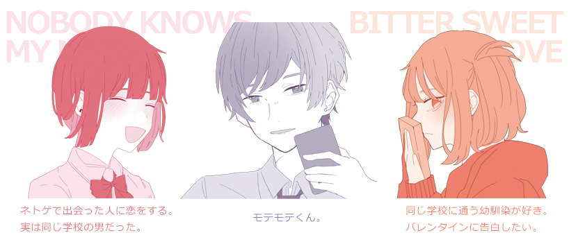 「Nobody Knows My Name」はネット依存の女の子がゲームで知り合った異性に恋をするというお話ですが、恋をした相手は同じ学校の男の子だった、、、というオチになっています(藍瀬さんは僕に許可なくこういうオチにしちゃうんです。自由人笑)