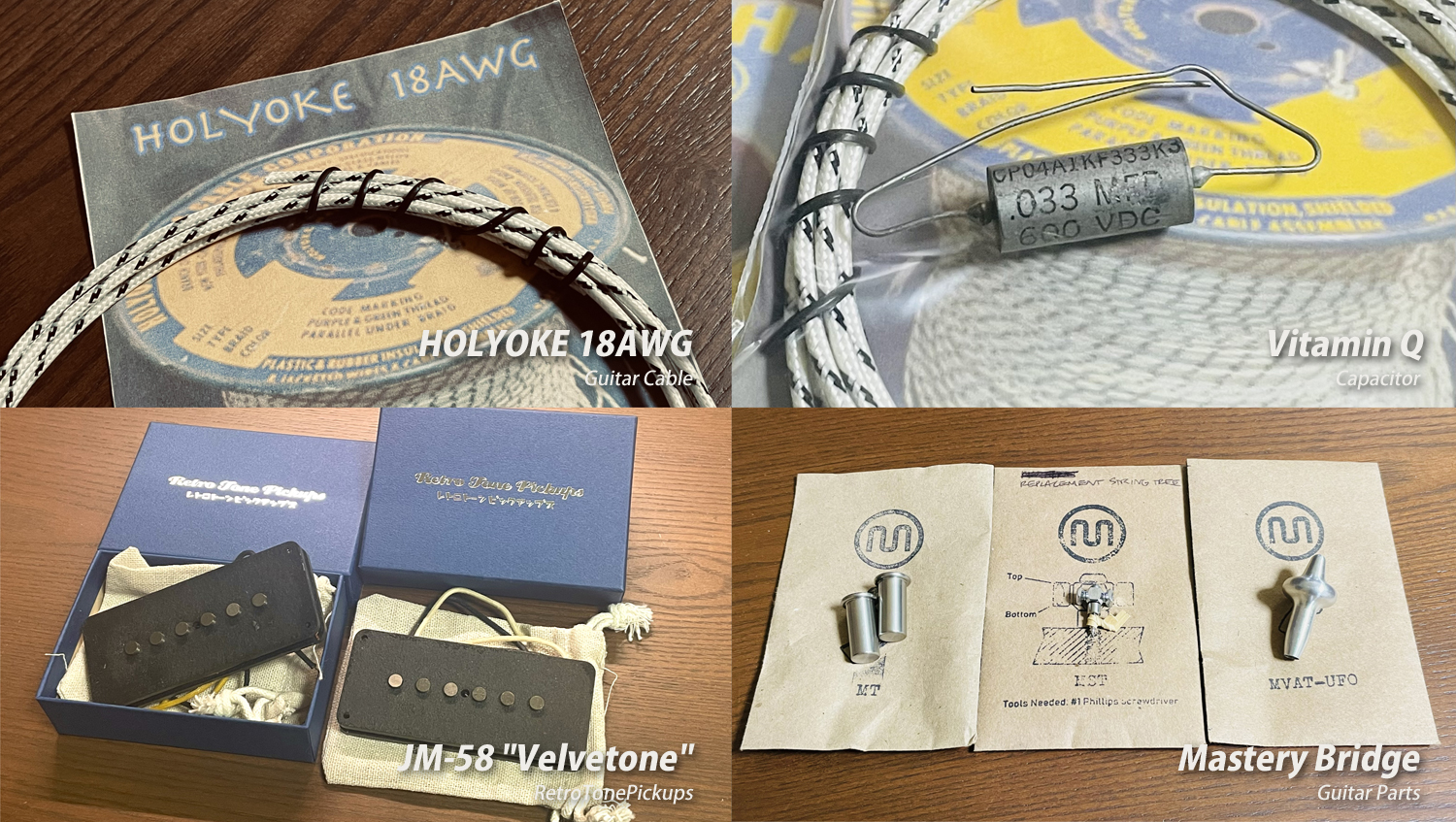 すぐ試したかったのが配線材です。いくつか買ってみましたがホルヨークという1940~50年代のワイヤーが良かったです。ヴィンテージだから勝手に枯れた音のイメージだったけど一気に音が太くなって驚いた。
