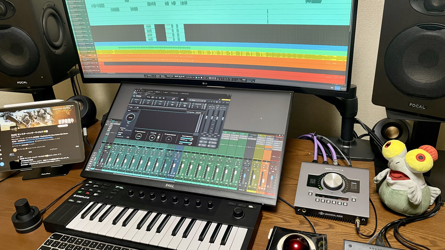 サブモニターを必要とするシーンは主に音楽制作。特にミキサー画面ですね。各楽器の音量やエフェクトなど調節する部分なんですけど、それを1画面内に表示させておくと編集画面が狭くなってしまう。