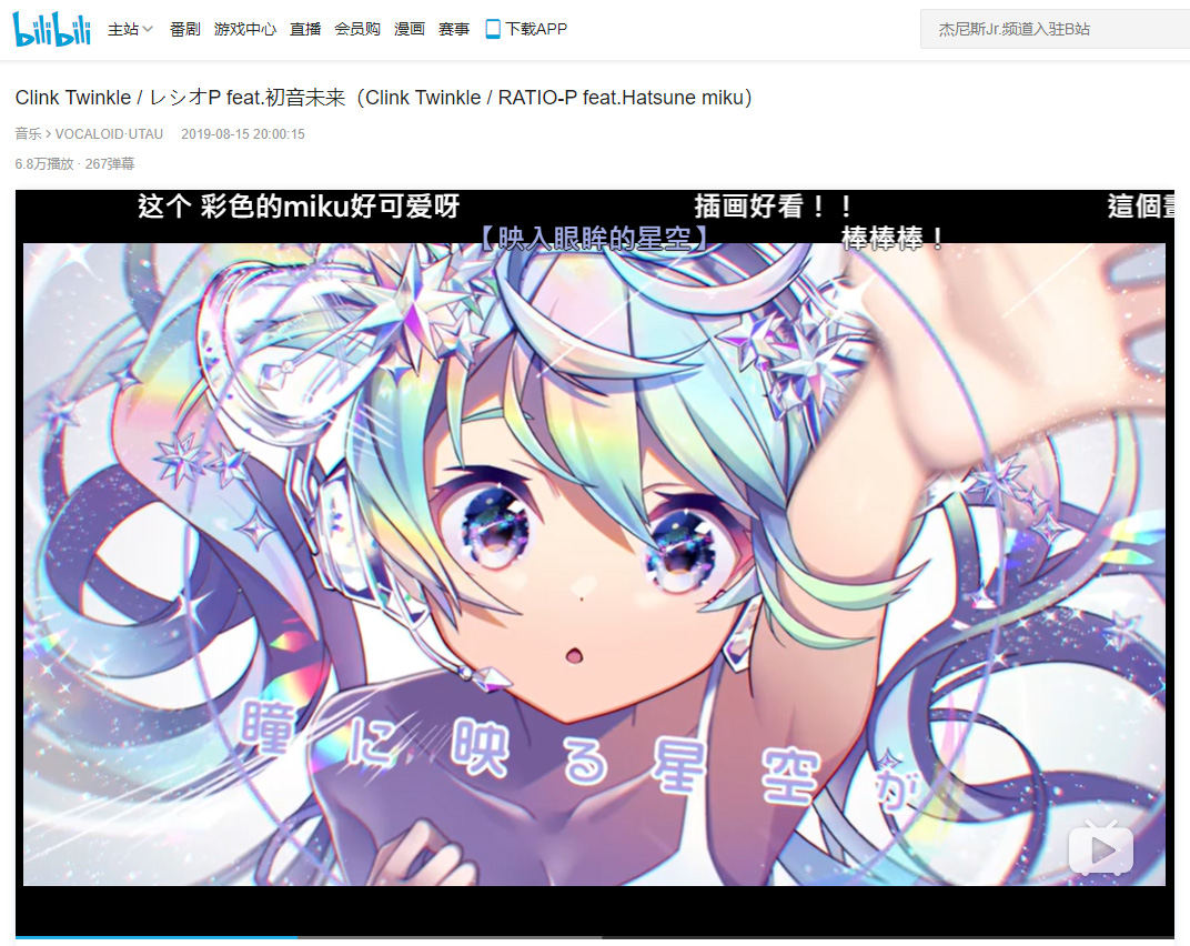 中国サイト「bilibili」でClink Twinkleが67000再生されました。ありがとうございます。