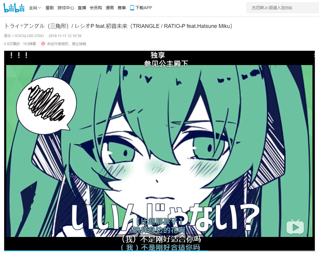 中国サイト「bilibili」で「トライ▽アングル」が59000再生されました。