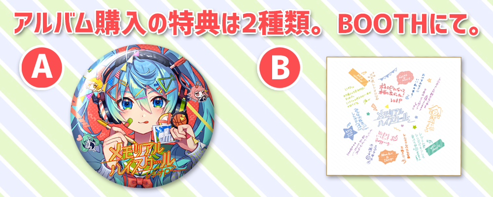 ニューアルバムはBOOTHでのご購入限定で2種類の特典が選べます。Amazon、メロンブックスでの通販も開始されますが、今のところ5月中旬の予定です。