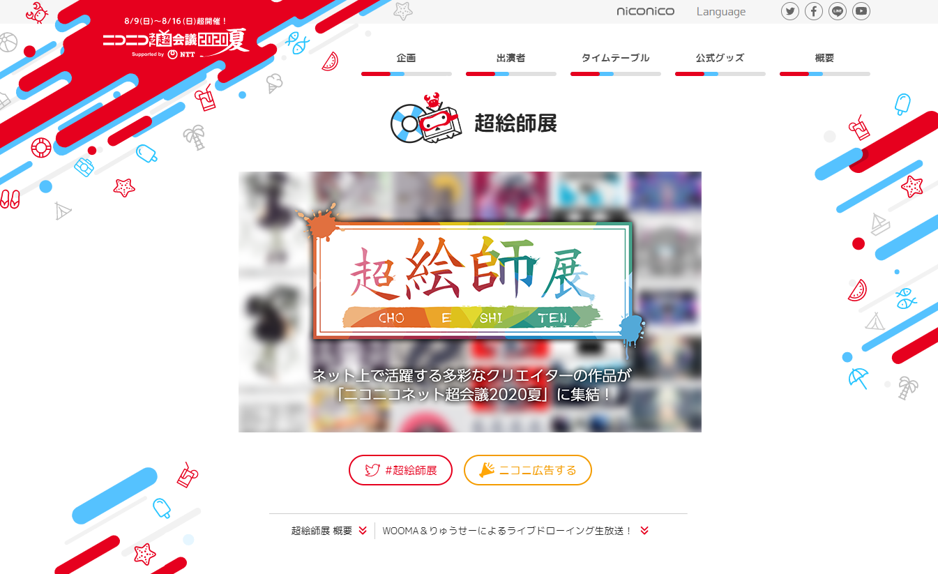 ニュース関連リンク ニコニコネット超会議2020夏|超絵師展|のう